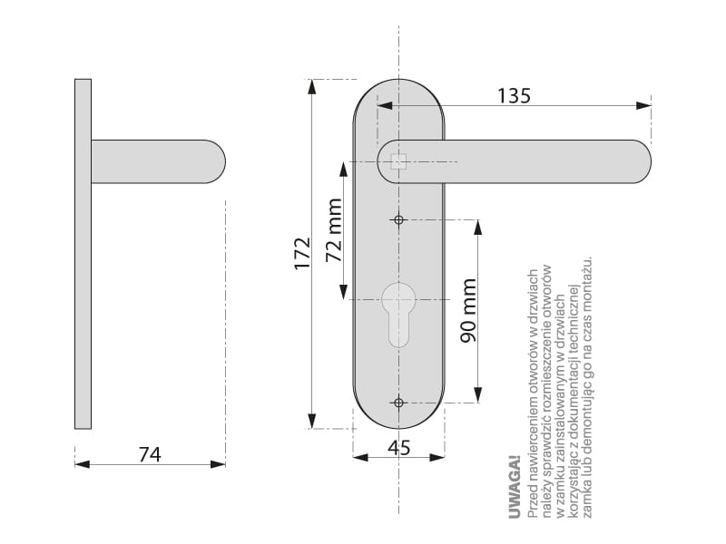 - ☛ Typ klamki: Długi szyld