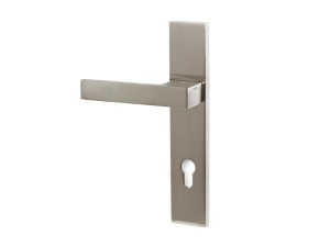 Rączka osadzona została na podłużnym szyldzie wykonanym ze stali. osadzona została na podłużnym szyldzie wykonanym ze stali. W ofercie znajdą Państwo wiele dostępnych rodzajów przebicia szyldu: klucz, wkładka, pokrętło WC.