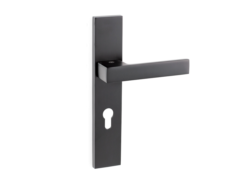 Rączka osadzona została na podłużnym szyldzie wykonanym ze stali.