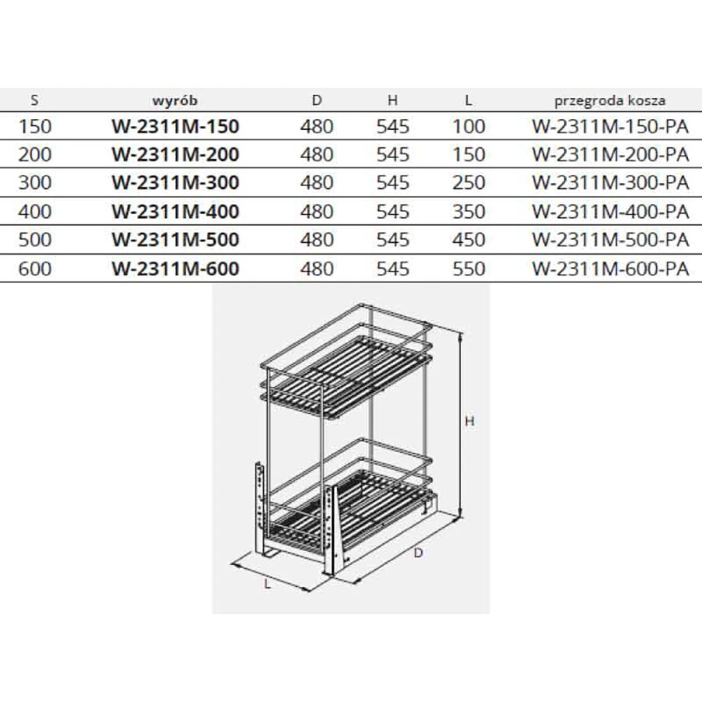 Wysokie przegrody zapewniają stabilność produktów umieszczonych w koszu, bezpieczeństwo przed przewróceniem się i rozbiciem. Samodociąg z hamulcem gwarantuje ciche domykanie. Funkcja pełnego wysuwu zapewni Ci szeroki dostęp do przechowywanych produktów.