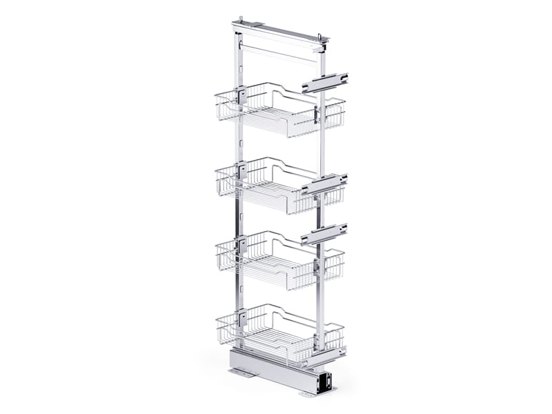 Wysokie przegrody zapewniają stabilność produktów umieszczonych w koszu, bezpieczeństwo przed przewróceniem się i rozbiciem. Samodociąg z hamulcem gwarantuje ciche domykanie. Funkcja pełnego wysuwu zapewni Ci szeroki dostęp do przechowywanych produktów.