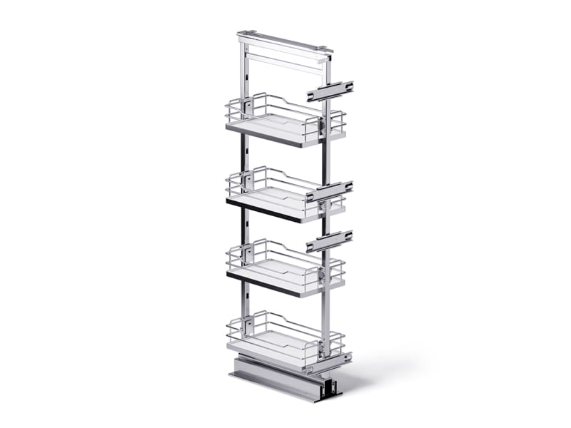 Wysokie przegrody oraz mata antypoślizgowa zapewniają stabilność produktów umieszczonych w koszu, bezpieczeństwo przed przewróceniem się i rozbiciem. Samodociąg z hamulcem gwarantuje ciche domykanie. Funkcja pełnego wysuwu zapewni Ci szeroki dostęp do przechowywanych produktów.