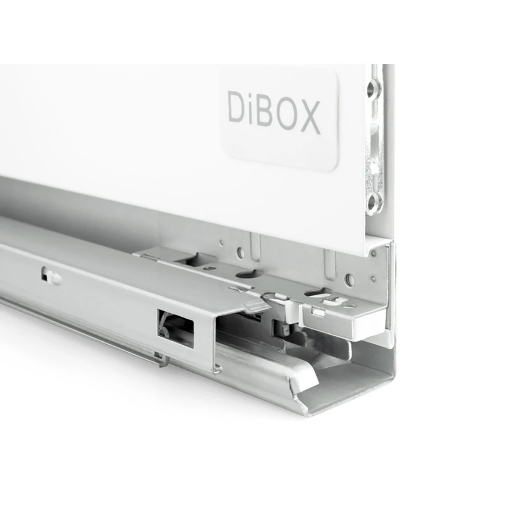 Cienkościenna szuflada DiBOX posiada duże możliwości konfiguracji, może być montowana jako standardowa szuflada lub jako szuflada wewnętrzna (dedykowane fronty wewnętrzne dostępne są osobno w sprzedaży). Dzięki temu dostosujesz system szuflad do swoich indywidualnych potrzeb i preferencji, uzyskując idealne rozwiązanie dla swojego wnętrza.