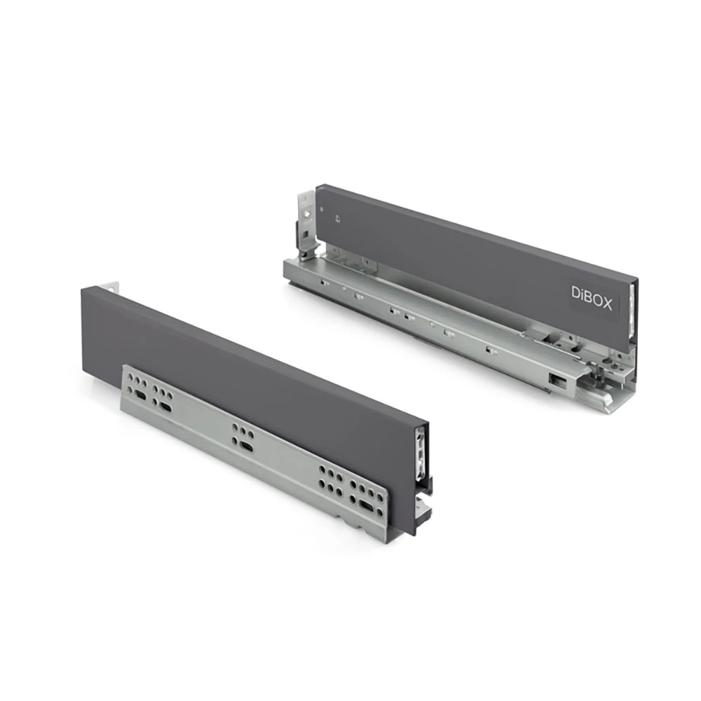 Cienkościenna szuflada DiBOX posiada duże możliwości konfiguracji, może być montowana jako standardowa szuflada lub jako szuflada wewnętrzna (dedykowane fronty wewnętrzne dostępne są osobno w sprzedaży). Dzięki temu dostosujesz system szuflad do swoich indywidualnych potrzeb i preferencji, uzyskując idealne rozwiązanie dla swojego wnętrza.