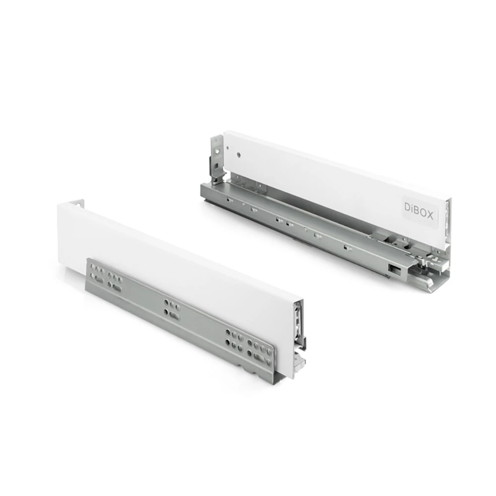 Cienkościenna szuflada DiBOX posiada duże możliwości konfiguracji, może być montowana jako standardowa szuflada lub jako szuflada wewnętrzna (dedykowane fronty wewnętrzne dostępne są osobno w sprzedaży). Dzięki temu dostosujesz system szuflad do swoich indywidualnych potrzeb i preferencji, uzyskując idealne rozwiązanie dla swojego wnętrza.