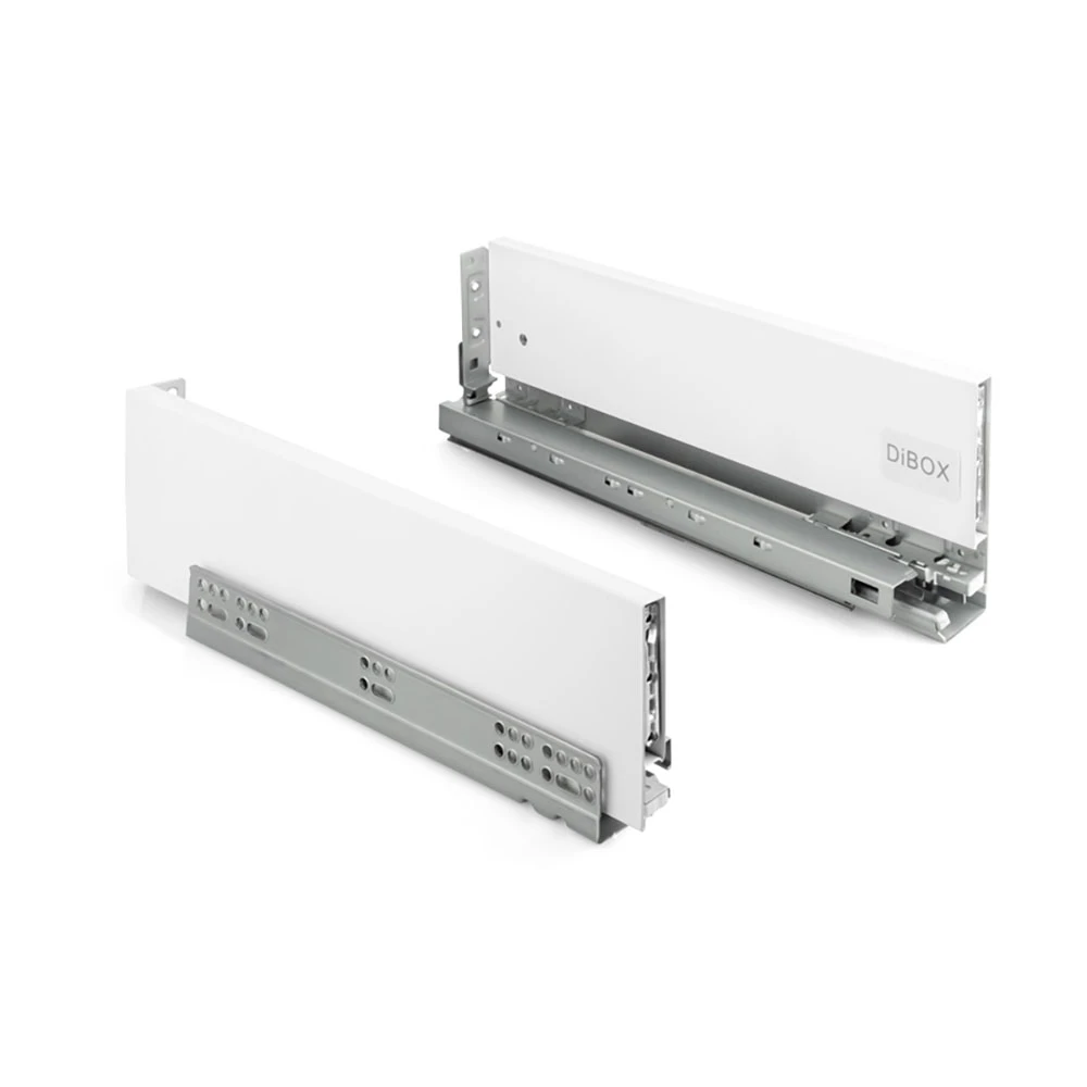 Cienkościenna szuflada DiBOX posiada duże możliwości konfiguracji, może być montowana jako standardowa szuflada lub jako szuflada wewnętrzna (dedykowane fronty wewnętrzne dostępne są osobno w sprzedaży). Dzięki temu dostosujesz system szuflad do swoich indywidualnych potrzeb i preferencji, uzyskując idealne rozwiązanie dla swojego wnętrza.