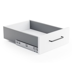 - Prowadnica wyposażona jest w funkcję miękkiego domyku, co zapewnia płynne i ciche działanie szuflady. Dzięki temu użytkowanie jest niezwykle komfortowe, a zamykanie szuflady jest ciche.