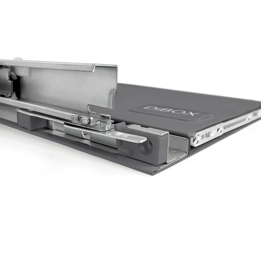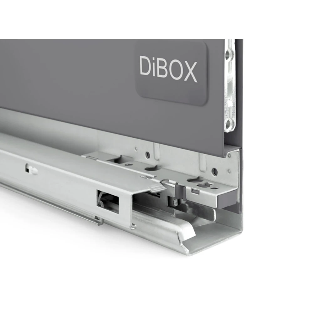 Cienkościenna szuflada DiBOX posiada duże możliwości konfiguracji, może być montowana jako standardowa szuflada lub jako szuflada wewnętrzna (dedykowane fronty wewnętrzne dostępne są osobno w sprzedaży). Dzięki temu dostosujesz system szuflad do swoich indywidualnych potrzeb i preferencji, uzyskując idealne rozwiązanie dla swojego wnętrza.