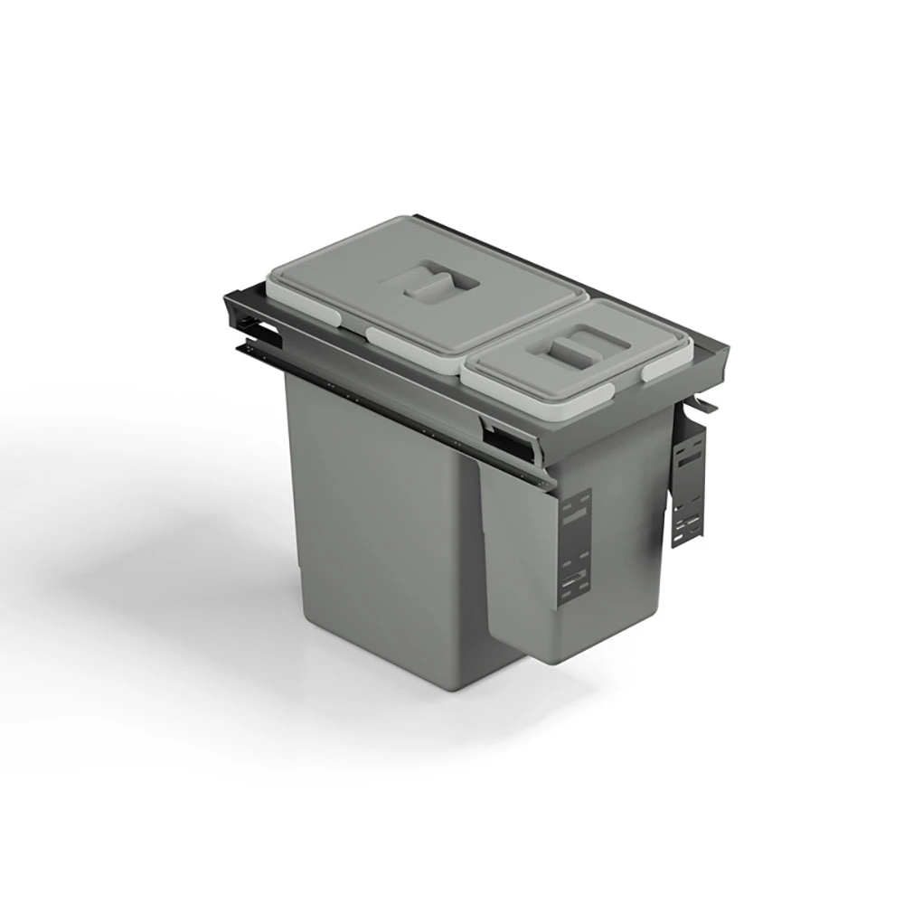 Kosz PKK-1640 to rozwiązanie stworzone z myślą o pełnym komforcie użytkowania i maksymalnym wykorzystaniu przestrzeni w szufladach FUTURA. Dzięki precyzyjnemu dopasowaniu kosz idealnie wpasowuje się w wnętrze szuflady, gwarantując stabilność i brak luzów. Mogą Państwo mieć pewność, że system sortowania odpadów będzie zawsze na swoim miejscu, a dostęp do niego – szybki i bezproblemowy.