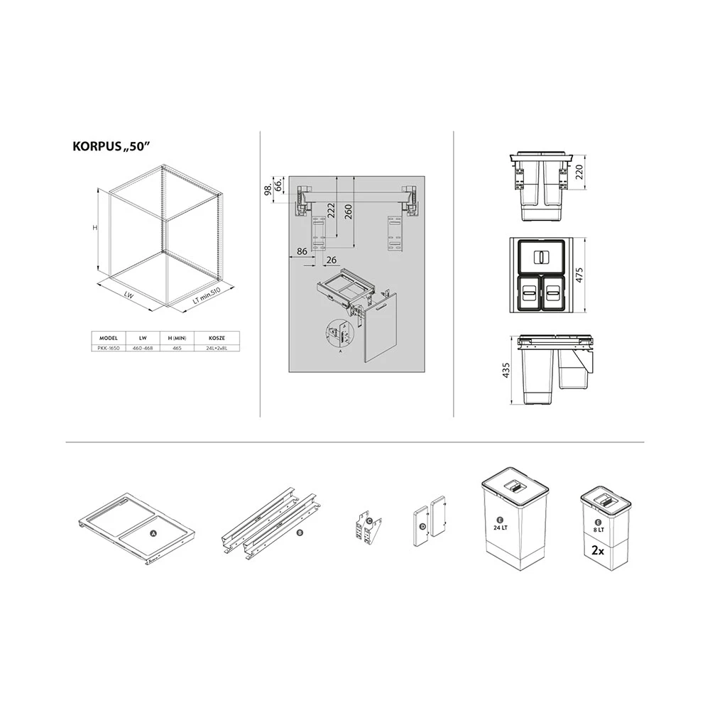 UWAGA: Kosz PKK-1650 został zaprojektowany specjalnie do szuflady FUTURA PK-1600 L-500. Szuflada nie jest częścią zestawu i należy ją zakupić na osobnej aukcji.