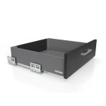Szuflada FUTURA w kolorze antracytowym to elegancka, stylowa opcja dla osób ceniących sobie nowoczesny wygląd i funkcjonalność. Antracyt dodaje wnętrzom wyrazistości i charakteru, a jednocześnie emanuje subtelną elegancją. Jest to barwa uniwersalna, która świetnie komponuje się z różnorodnymi stylami wnętrzarskimi, wykonanymi w aranżacjach: