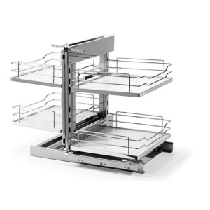 W pełni wykorzystanie przestrzeni mebli kuchennych to nie lada wyzwanie, szczególnie narożnej szafki która nie jest komfortowa w użytkowaniu oraz utrudnia otwarcie frontu. Rozwiązanie tych problemów znajdą Państwo w KOSZU NAROŻNYM MAGIC COMFORT, produkt stworzony z myślą o pełnym wykorzystaniu narożnej szafki, wygodzie użytkowania ponieważ otrzymujemy pełny dostęp do zawartości. Design oraz wybór kolorystyczny koszy pasuje do każdej kuchni. Zastosowany system prowadnic działa cicho, precyzyjnie oraz posiada funkcję cichego domyku oraz pełnego wysuwu - pozwala na wyciągnięcie wszystkich koszy na zewnątrz - pełny dostęp do zawartości. Zastosowane kosze z pełnym dnem i matą antypoślizgową zabezpieczają produkty przed przewróceniem, rozlaniem, przesuwaniem.