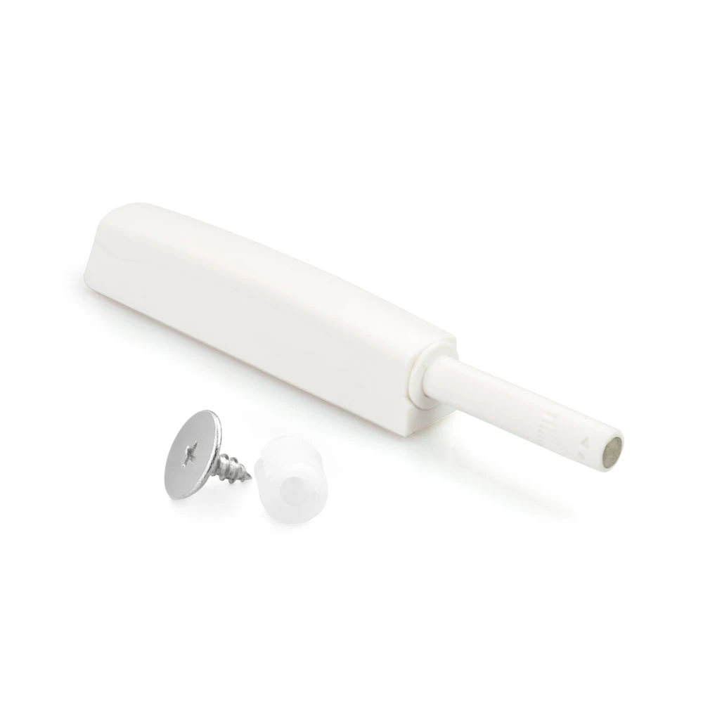 Odbojnik meblowy PG-030 (80x14x16 mm) biały, z końcówką magnetyczną i adapterem - Idealny do zastosowania z frontami bezuchwytowymi