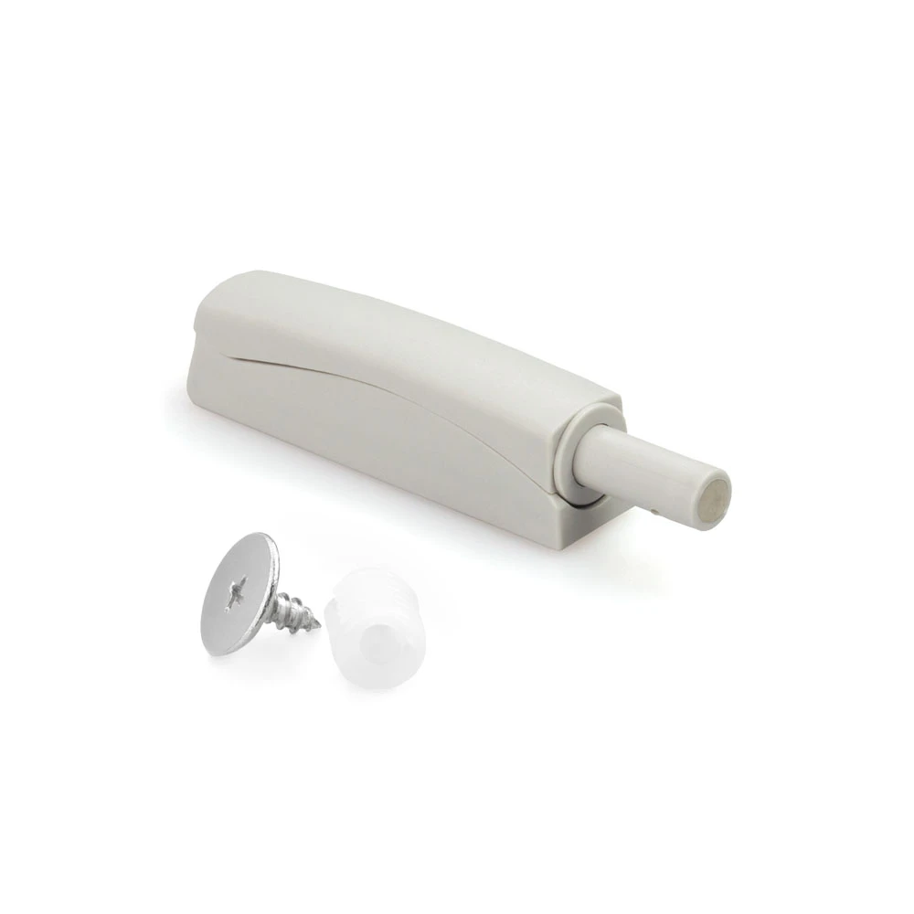 Niewielkie wymiary odbojnika pozwalają na jego dyskretne zastosowanie w meblach. Mocna sprężyna i bezolejowa konstrukcja gwarantują płynne działanie nawet w przypadku ciężkich frontów.