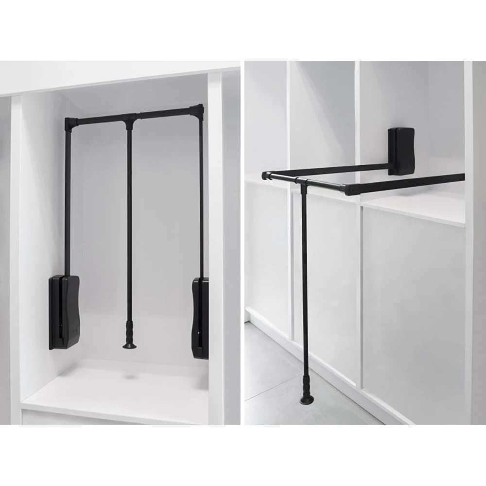 Pantograf to praktyczne rozwiązanie, które maksymalizuje wykorzystanie przestrzeni w dużych szafach. Dzięki prostemu w obsłudze mechanizmowi podnoszenia i opuszczania drążka, dostęp do wysoko zawieszonej odzieży staje się wyjątkowo wygodny. Po obniżeniu drążek pozostaje w miejscu, co ułatwia zdejmowanie odzieży.