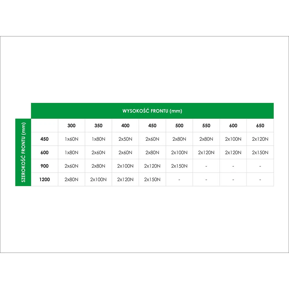 ⚠ Uwaga: Serdecznie prosimy o odniesienie się do tablicy rekomendowanych wymiarów frontu do poszczególnych wariantów podnośnika, w celu dobrania modelu o odpowiedniej mocy do Państwa mebli. ⚠
