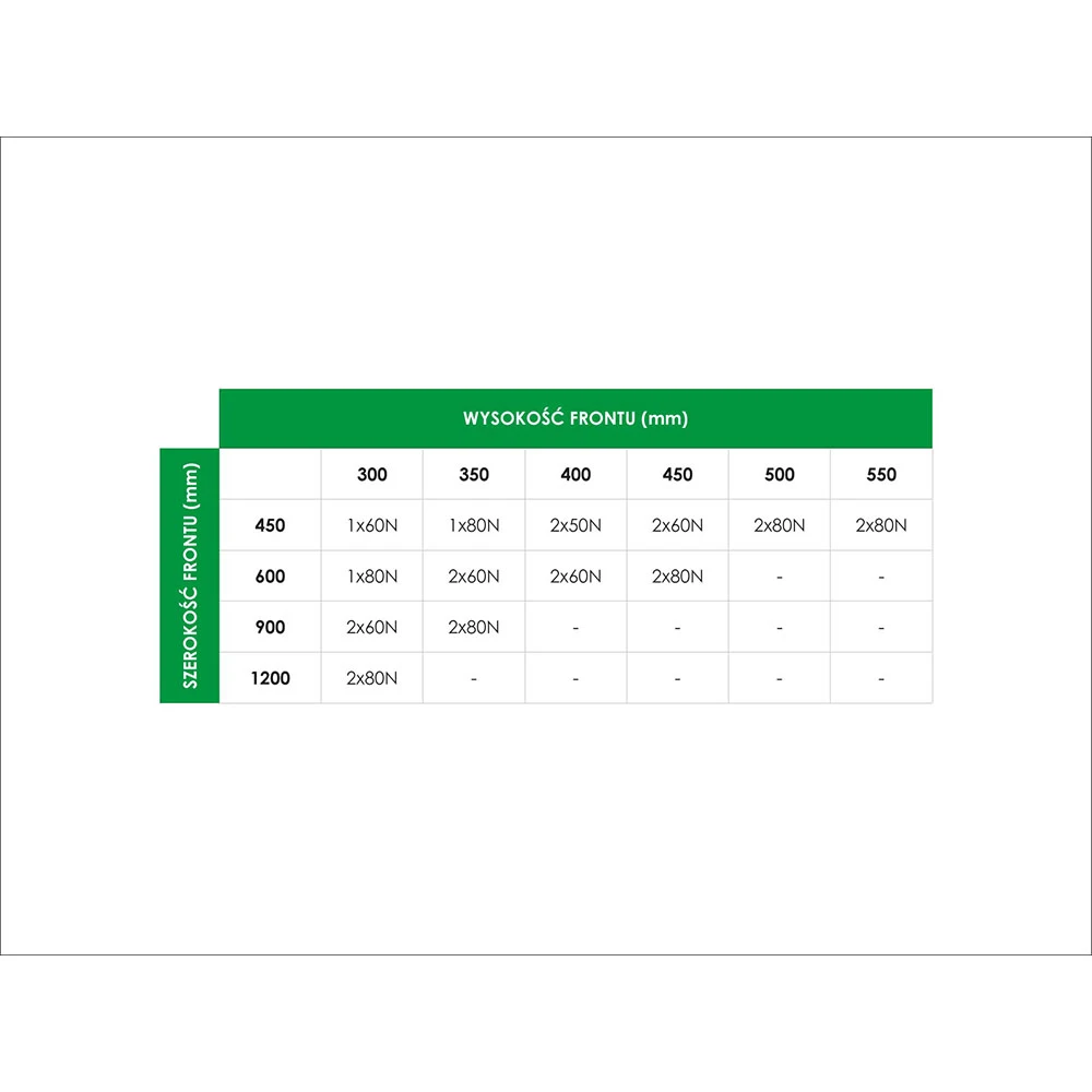 ⚠ Prosimy o odniesienie się do tablicy rekomendowanych wymiarów frontu dla poszczególnych wariantów podnośnika, w celu dobrania modelu o odpowiedniej mocy do Państwa mebli.