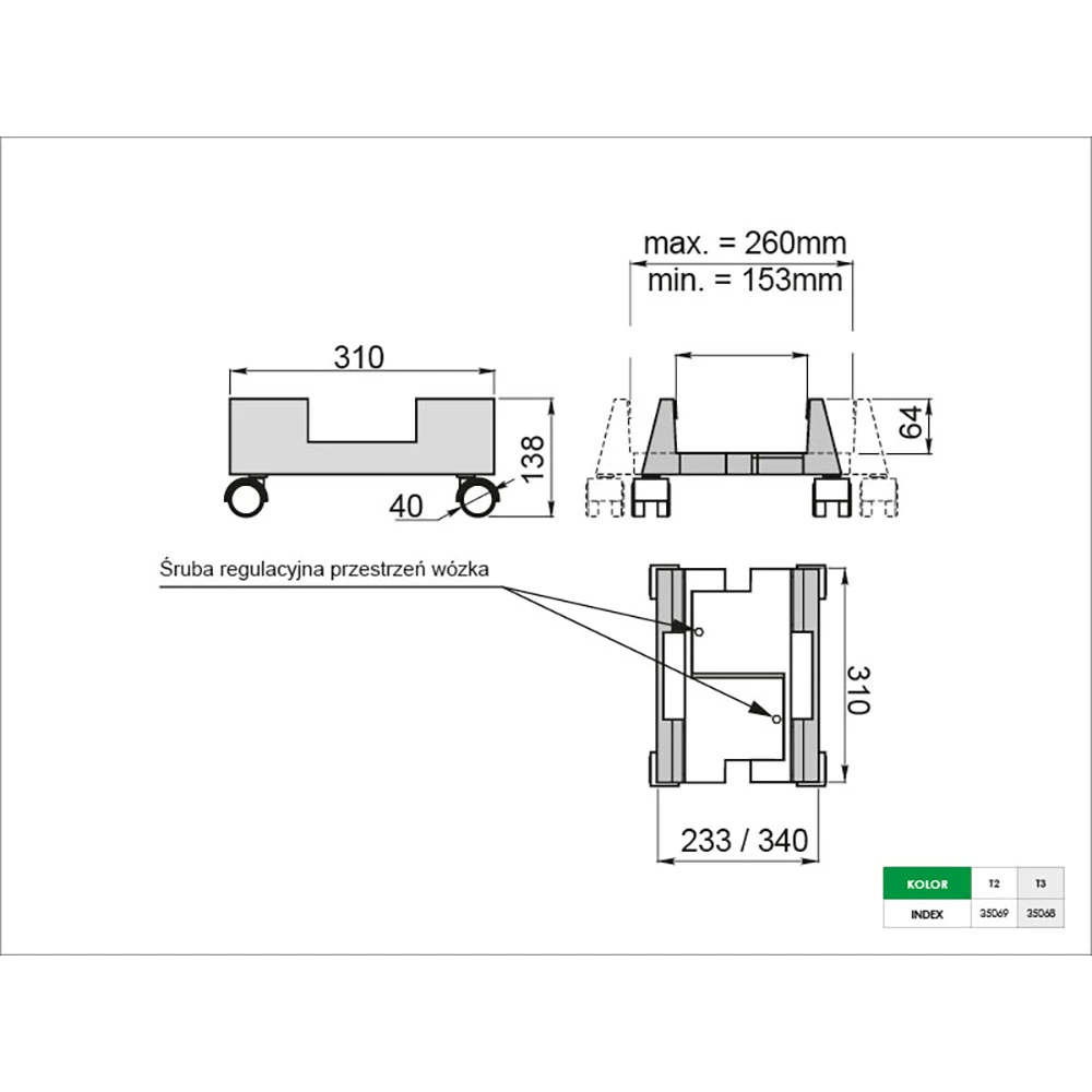 - ☛ Szerokość wewnętrzna: 153 mm - 260 mm