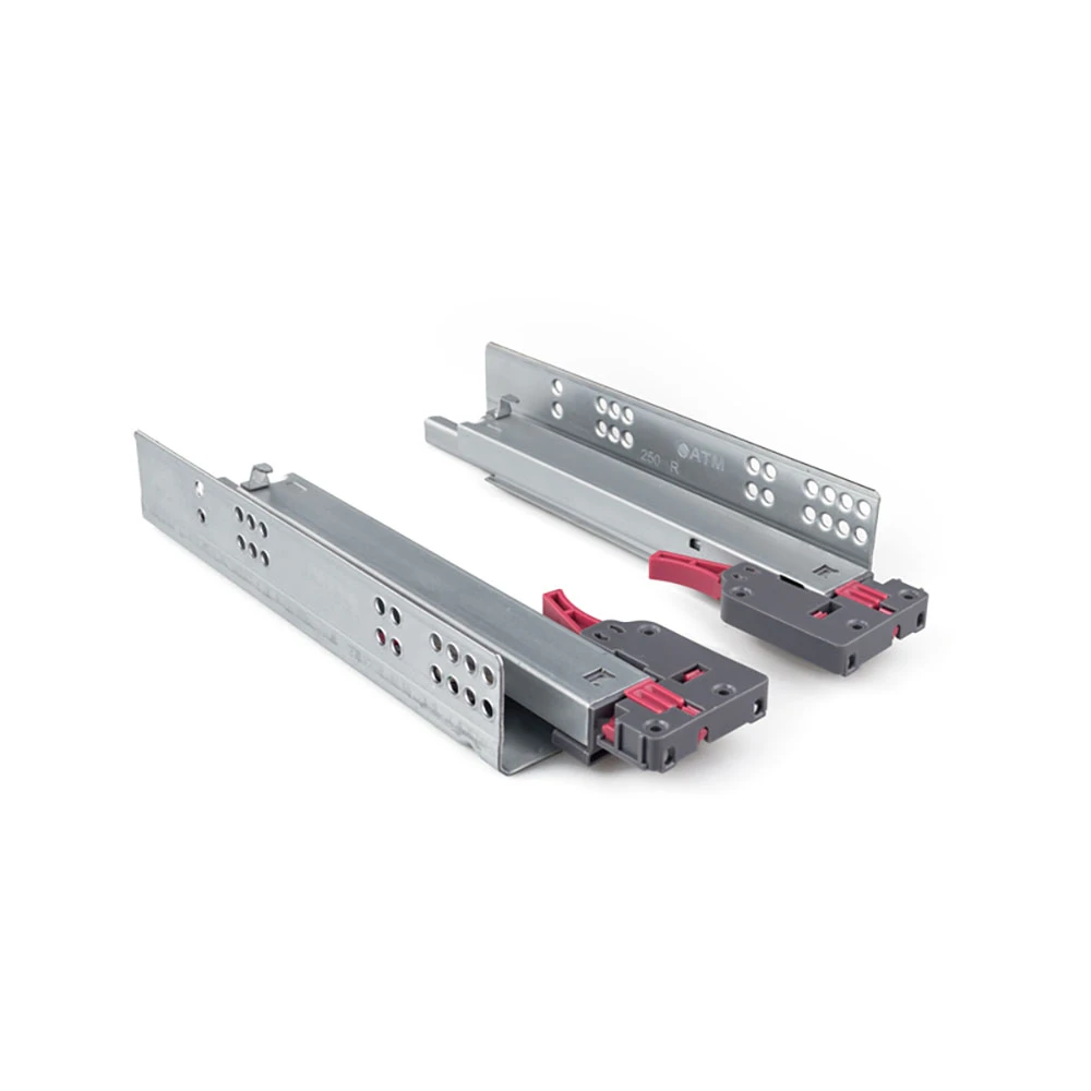 Prowadnice dolnego montażu TANDEM oferują wyjątkowy komfort z codziennego korzystania z mebli. Za sprawą ukrytego montażu, pozostają niewidoczne i nie zakłócą estetyki garderoby. Wysoka trwałość oraz jakość wykonania sprawiają, że są idealnym wyborem do każdej przestrzeni. Stosowane są do wszystkich szuflad drewnianych z płyty o grubości 16-18 mm (maksymalnie 19 mm).