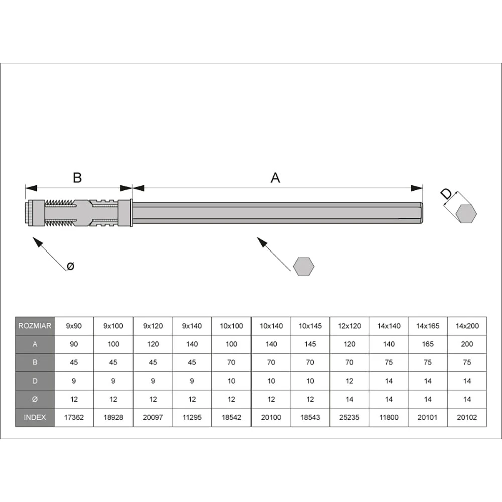 - ☛ Średnica kołka: 14 mm