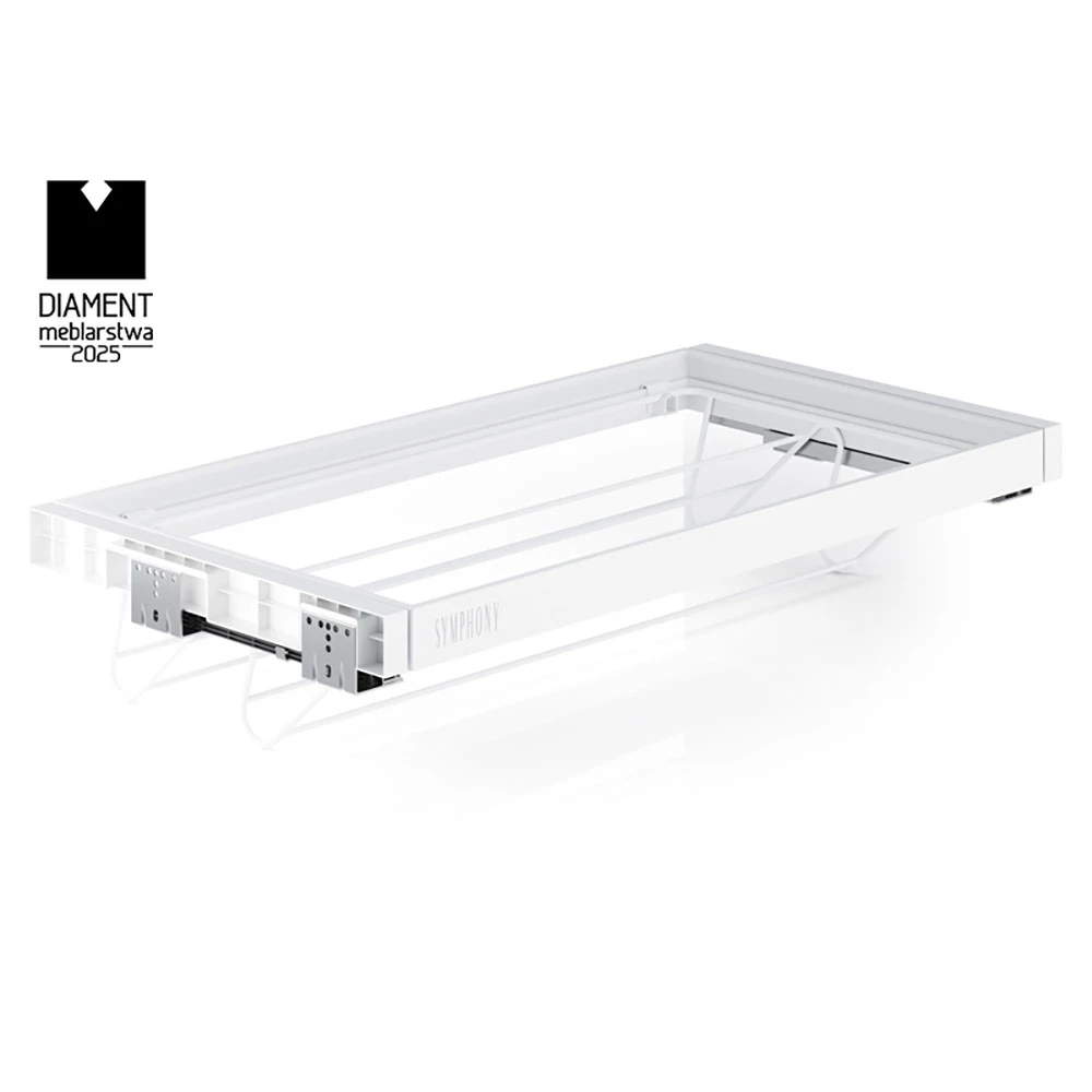 Seria SYMPHONY posiada regulację szerokości ramy w zakresie 5 cm (po 2,5 cm z każdej strony), co pozwala na idealne dopasowanie do różnych rozmiarów szaf. Uniwersalny zaczep umożliwia szybką wymianę kosza na inne akcesoria z serii SYMPHONY.