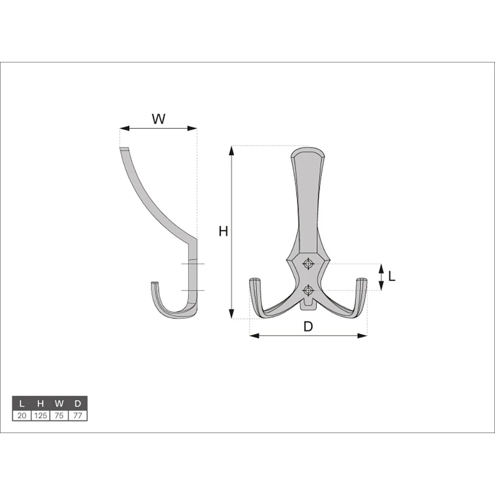 Wieszak meblowy w klasycznym wykonaniu, wyposażony w trzy haczyki. Uniwersalny design sprawia, że doskonale odnajdzie się w każdym pomieszczeniu.