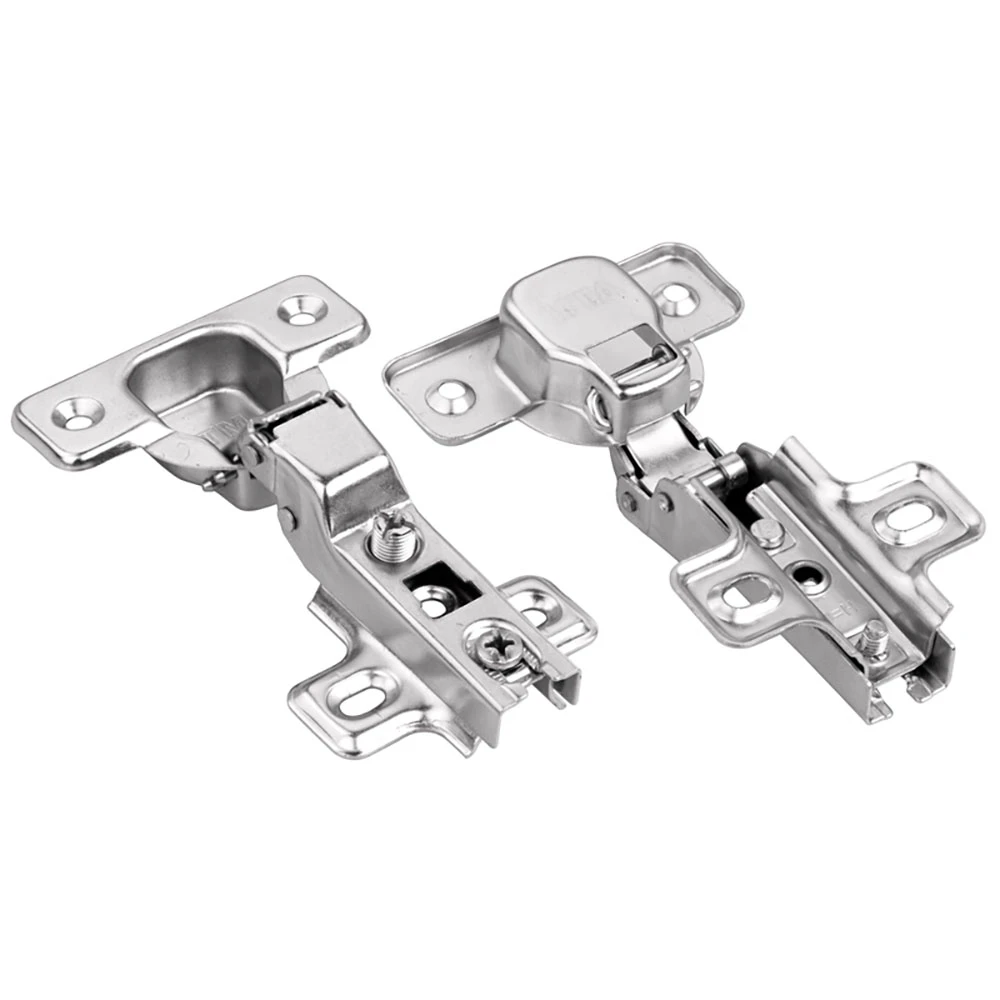 Zawias meblowy bliźniaczy T-08 (⌀ 35 mm) z prowadnikiem H-0 - Stal niklowana