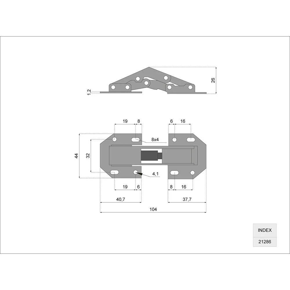 - ☛ Typ zawiasu: Tłoczkowy (nawierzchniowy, bezpuszkowy)