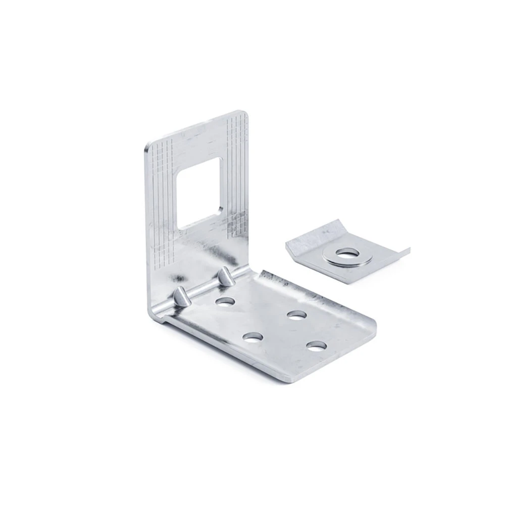 Dzięki specjalnym nacięciom na kątowniku z łatwością zablokujesz blaszkę w odpowiednim miejscu, co umożliwia precyzyjną regulację w pionie i poziomie.