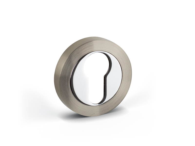 Door escutcheon with hole for EURO cylinder K-007-01 ⌀50 mm brushed nickel + chrome finish - STANDARD LINE