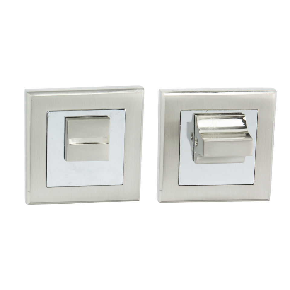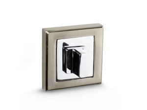 Square door escutcheon with WC thumb turn for interior doors K-008-03 brushed nickel (INOX) + chrome - STANDARD LINE