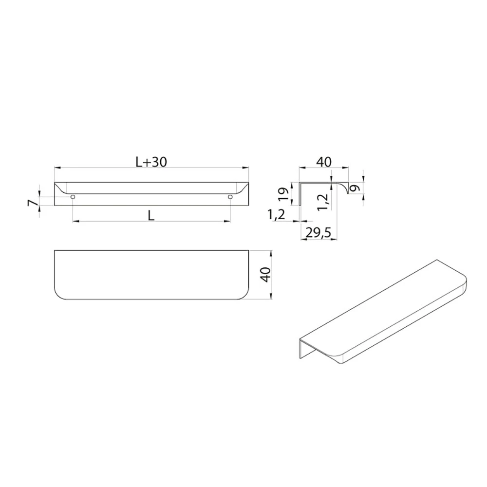 The handle is made of anodized aluminum, which increases its resistance to scratches and corrosion. This ensures long-lasting aesthetics, even in frequently used furniture.