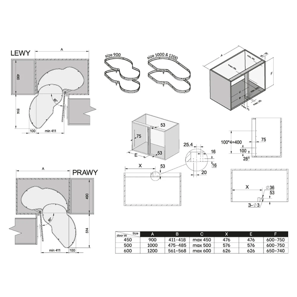 ⚠ WB-425 "1200" is designed for corner cabinets with a minimum length of 1200 mm.