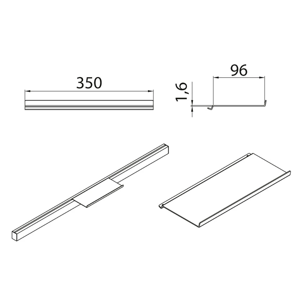 Upper Shelf RE-571 (350x96x1.6 mm) for Kitchen Accessories in Matte Black - Organization in a Modern Style