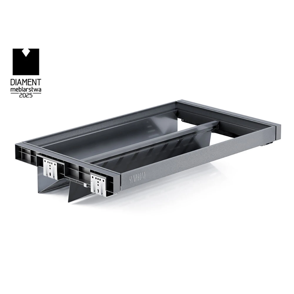 The SYMPHONY series features an adjustable frame width of 5 cm, allowing for a perfect fit in various wardrobe or cabinet sizes. The adjustment is evenly distributed, meaning you can modify the frame by 2.5 cm on each side. A universal clip enables quick replacement of accessories with others from the SYMPHONY series.