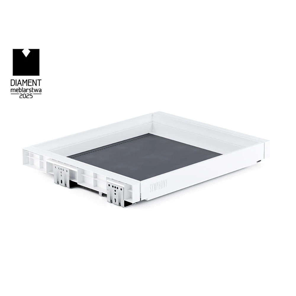 White Storage Box (Pull-out Shelf) WB-673-600 SYMPHONY - Soft Close, Full Extension, 60,000 Cycles, Concealed Mounting, 35 kg Load Capacity