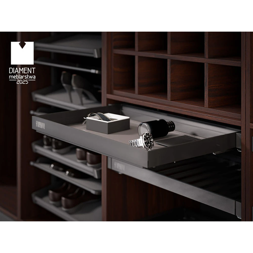 The WB-673 model from the SYMPHONY series is equipped with a full-extension system, allowing the shelf to be fully extended. This ensures easy access to the entire contents, significantly improving user comfort.
