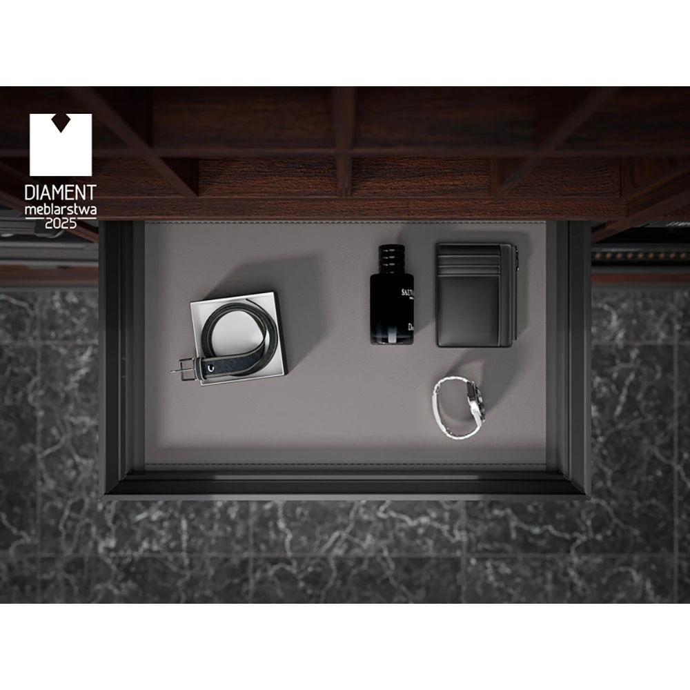 The WB-673 model from the SYMPHONY series is equipped with a full-extension system, allowing the shelf to be fully extended. This ensures easy access to the entire contents, significantly improving user comfort.