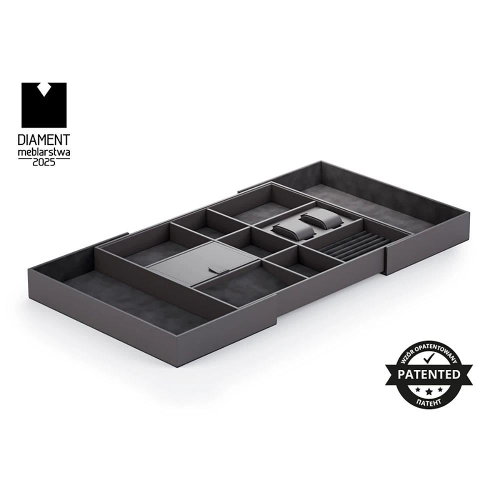 WB-674 drawer organizer Symphony in anthracite finish - Adjustable sides, elegant leather finish
