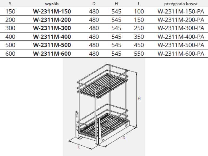 Cargo basket MD MINI (N).full ext.60 2Layer. W-2311M-600 P1 Shiny white painted