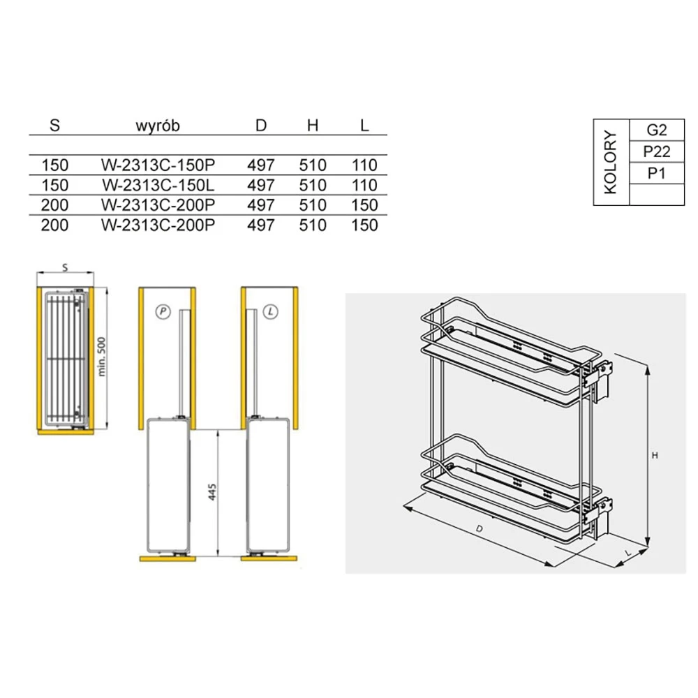 Cargo basket PRESTIGE MINI (N).side mounting peł.dno 15P 2Layer.W-2313C-150P G2 chrome plated