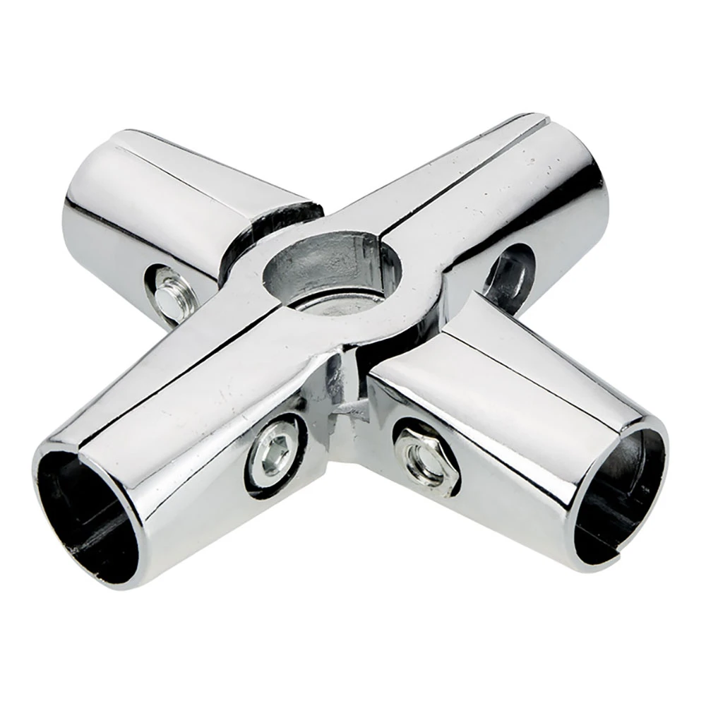 4-way through connector (cross connector) MN-220 (123x123 mm) in chrome - For ⌀ 25 mm tubes and tubular ball systems