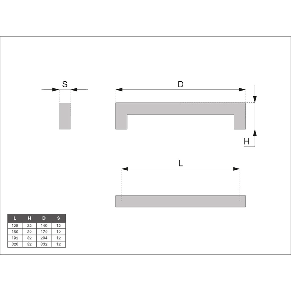 Loft Square Furniture Pull Handle UM-190 L-192 (204x12x32 mm) Matte Black - Ideal for Kitchen Cupboards and Drawers