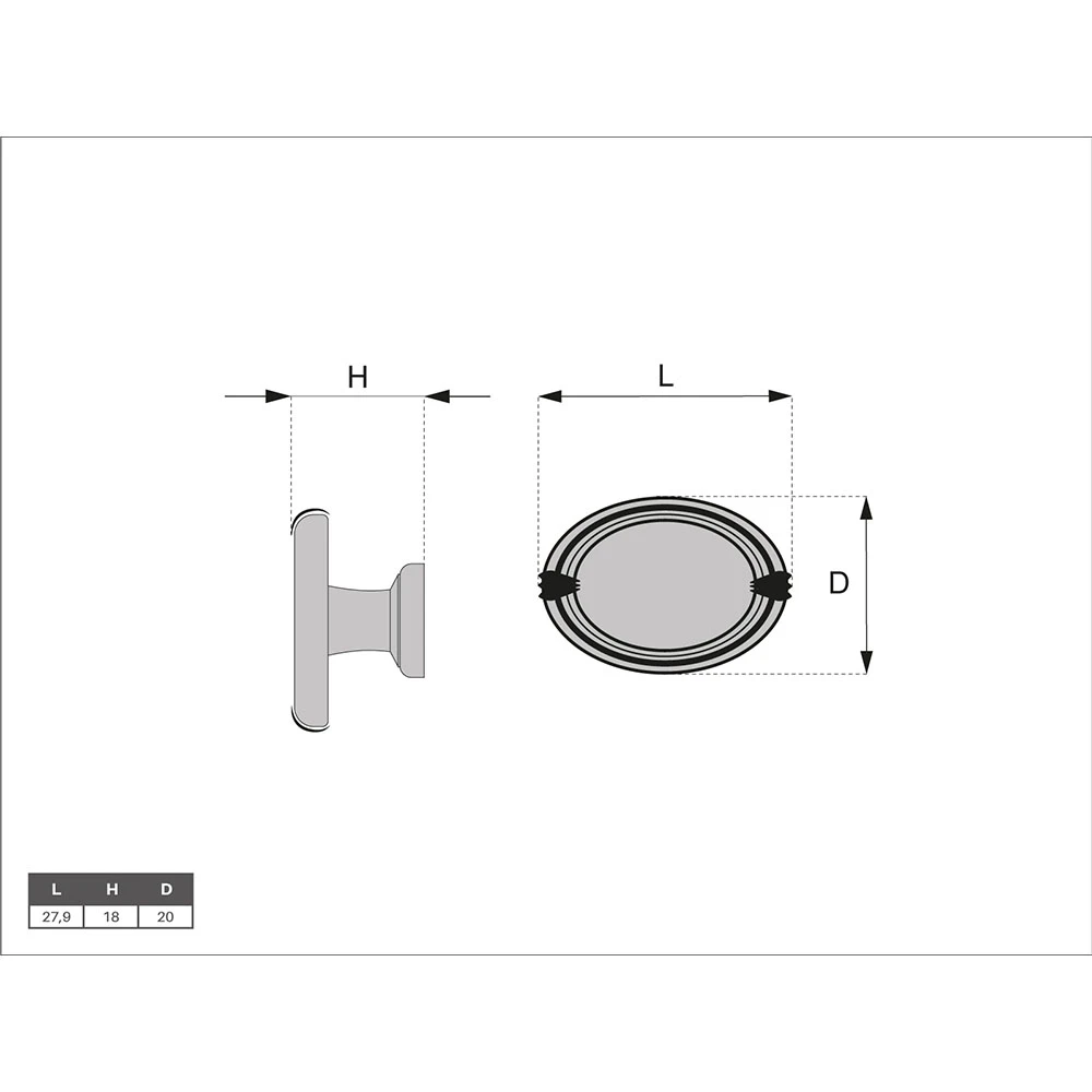 Oval Furniture Knob GM-220 - 28x20x18 mm - Antique silver