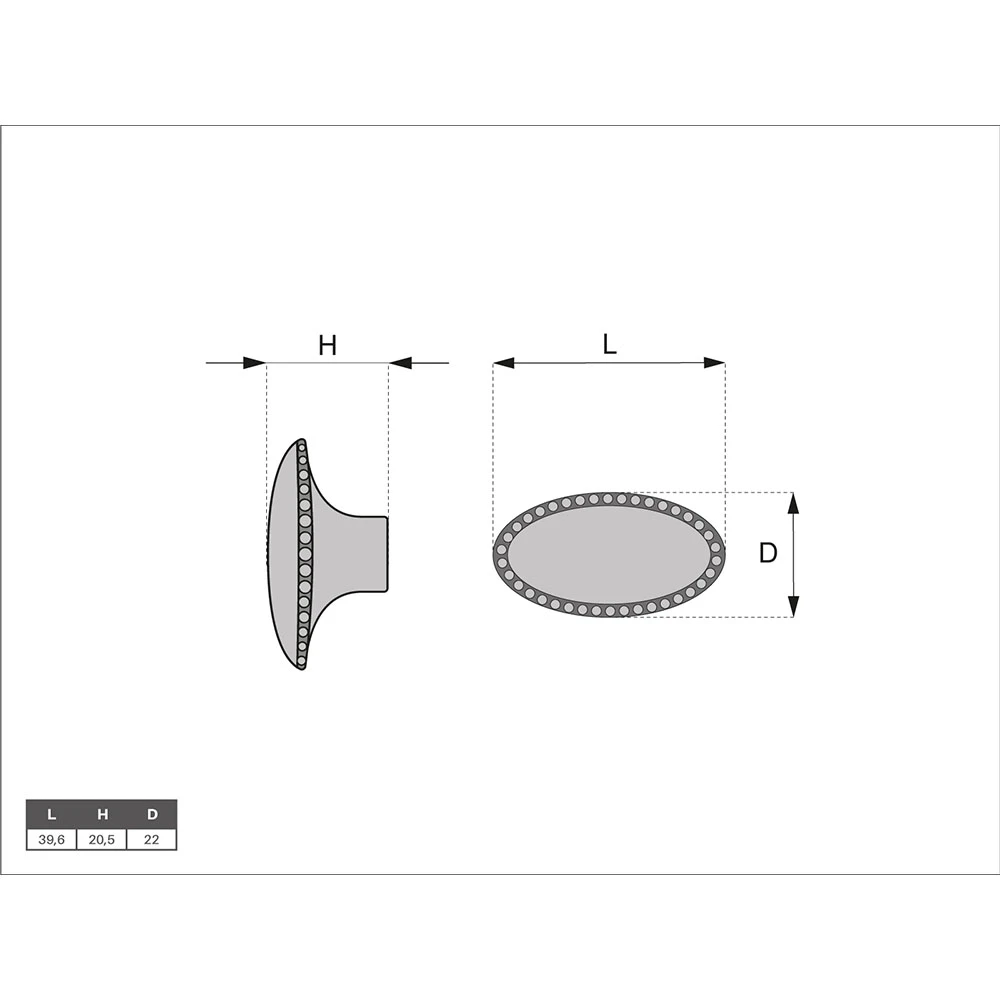Oval Furniture Knob GM-260 - Retro Style - 40x22x20 mm - Antique Gold