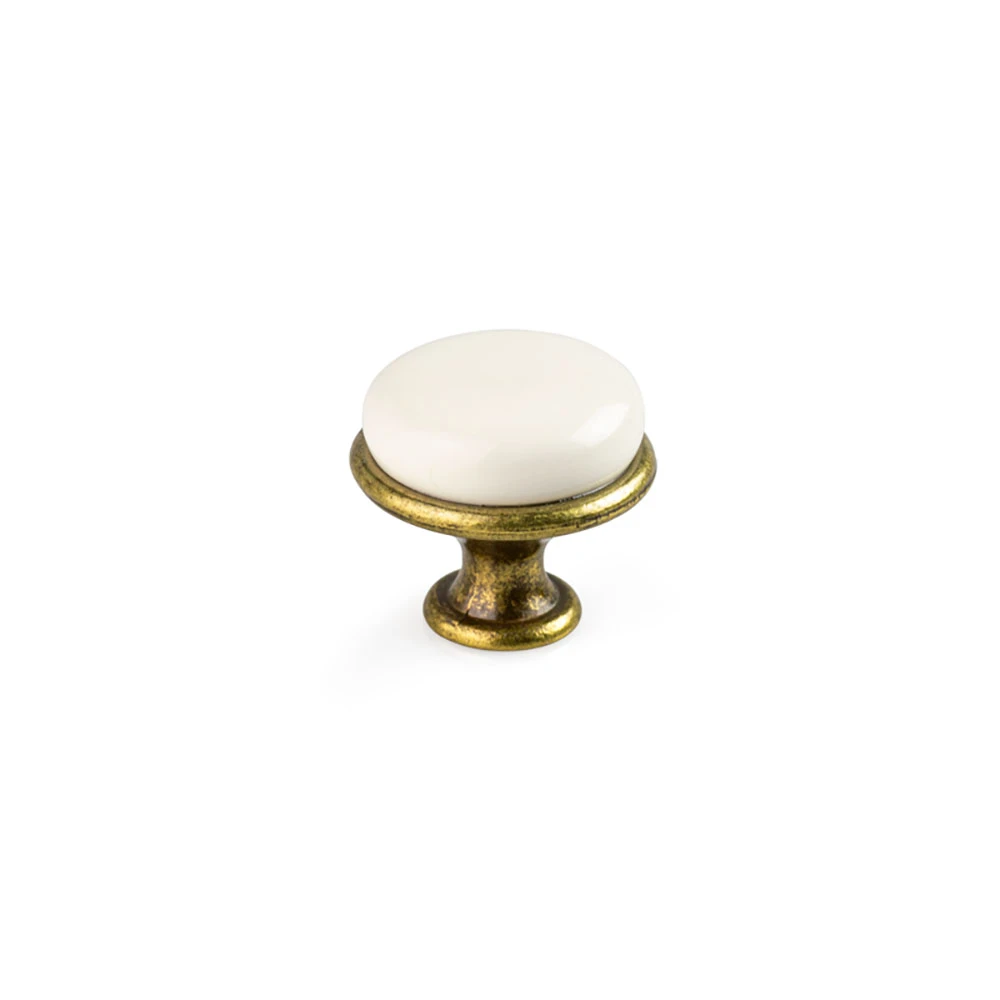 Cabinet Knob, Cupboard Door Knob in Gold Finish - White Porcelain - Vintage Style