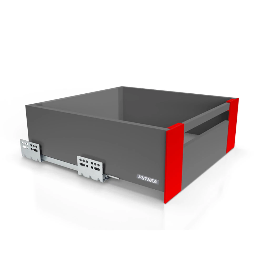 The mounting is designed for the FUTURA internal drawer by ATM, forming an integral part of the drawer’s construction. Its purpose is to provide a strong and stable connection between the drawer front and the drawer body. Available in various heights, it adapts to different internal drawer configurations, allowing flexible adjustment to meet individual user needs.