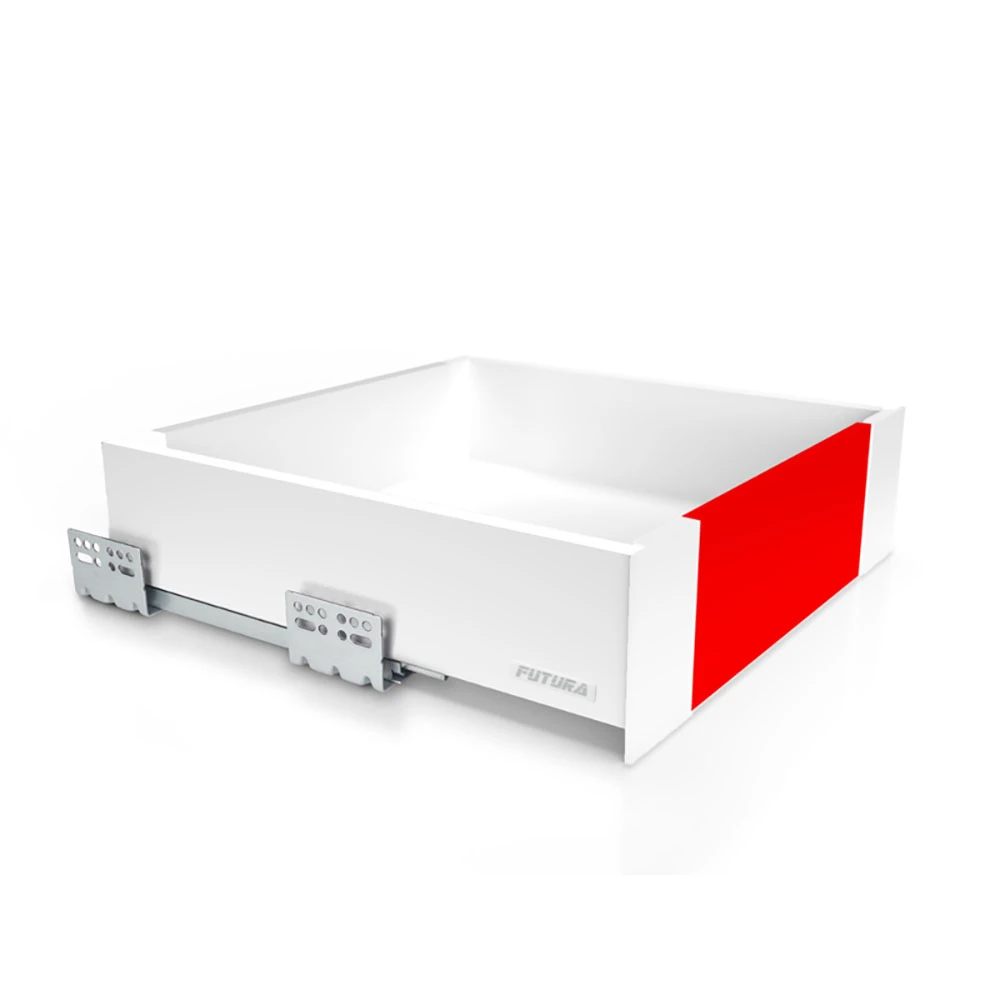Modern design, reliable quality, and maximum functionality - this is how the FUTURA drawer system can be described in short. The system ensures long durability (over 80,000 operating cycles) and a load capacity of up to 40 kg, confirmed by SGS and TÜV certifications. Soft-close provides everyday comfort, while full extension makes access to the contents easier. Additionally, the thin-walled drawer sides allow maximum use of space, making the FUTURA system an ideal solution for kitchens, wardrobes, or offices.
