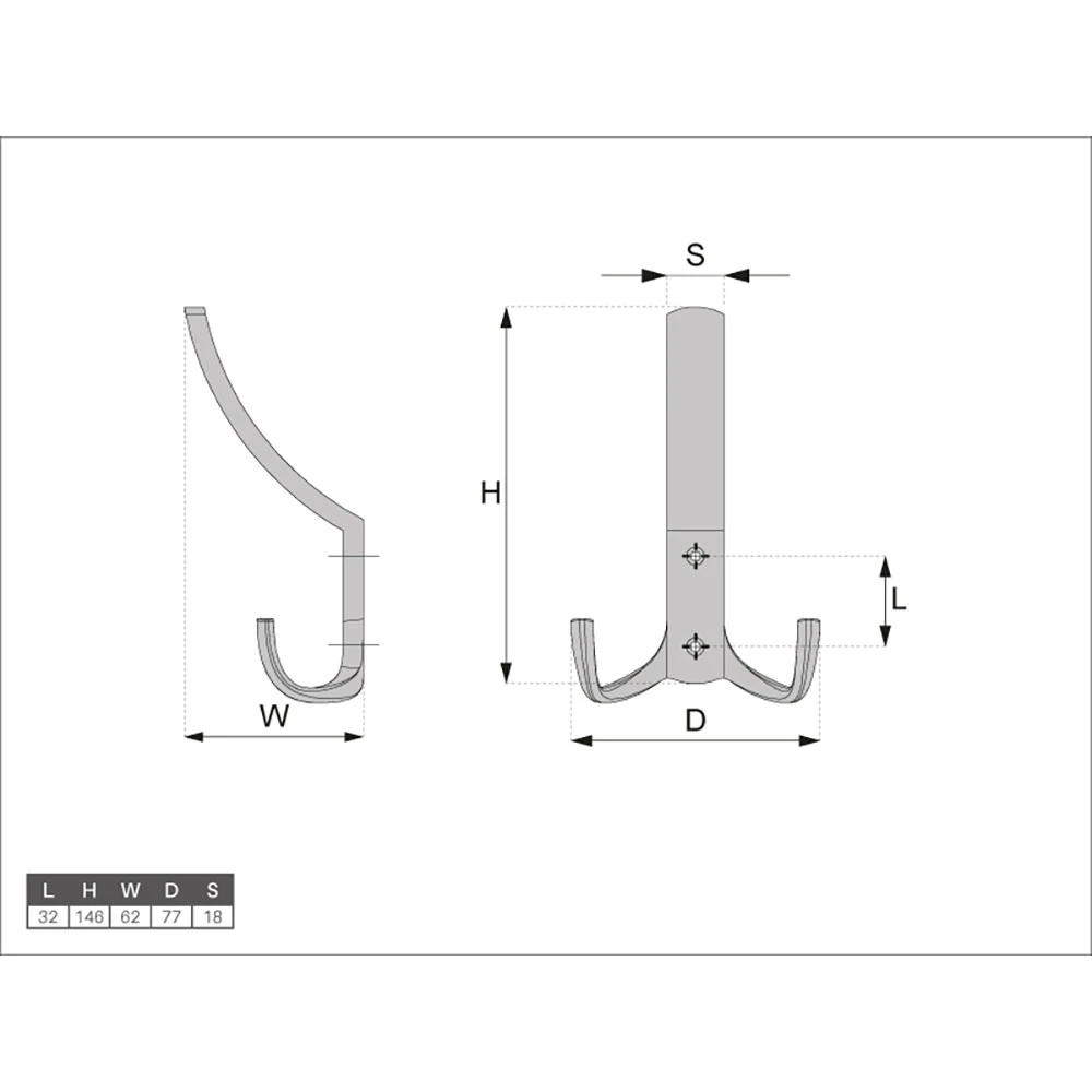 Coat hook WM-007 L-32 in antique silver finish - Retro design, ideal for clothes, jackets, backpacks, hats