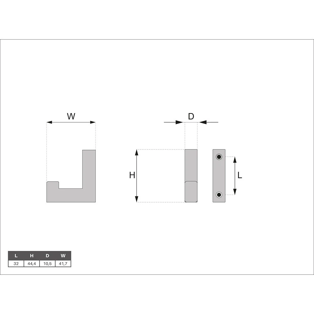 The hook is mounted using a bracket fixed with two screws. Thanks to the hidden mounting system, you’ll achieve a sleek final effect in no time. All necessary mounting hardware is included in the set.